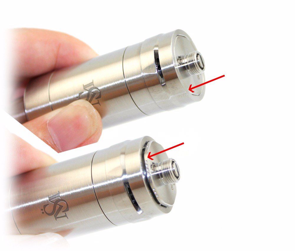 Подача жидкости в испарительную камеру осуществляется через отверстия в нижней части испарительной камеры. Обдув бака регулируется поворотом кольца на нижней части атомайзера. Особенность кольца обдува в том, что для его регулировки требуется его поднимать, поэтому сначала необходимо открыть подачу жидкости, потому что в закрытом состоянии тело испарительной камеры полностью блокирует возможность поднятия кольца регулировки обдува.